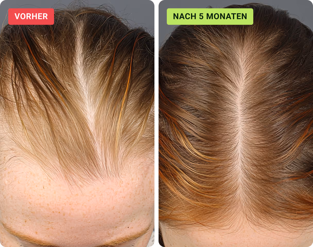 Die meisten Nutzer bemerken innerhalb von 4 Wochen eine Verbesserung ihrer Kopfhautgesundheit und Haarstruktur. Neue Haare beginnen in der Regel nach etwa 8 Wochen zu wachsen, mit deutlichen Verbesserungen in Dichte und Länge nach 12-16 Wochen konsequenter Anwendung.